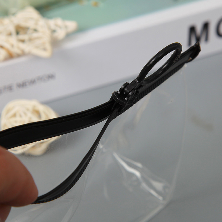 জিপার এবং জিপার হেড উভয়ই কালো, রঙের বৈসাদৃশ্যটি স্বচ্ছ ব্যাগের সাথে তুলনা করে তীক্ষ্ণ। ব্যাগটি জিপার হেডে একটি রিং সহ ডিজাইন করা হয়, যা ঝুলতে পারেকসমেটিক ব্যাগ সাফ করুনআপনার আঙুলে কখনও কখনও, আপনি এটি নিজের হাতে ধরে রাখার চেয়ে এটি আরও সুবিধাজনক।